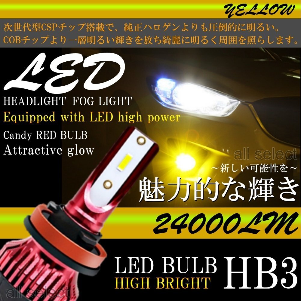 > HB3 高輝度 LEDヘッドライト LEDフォグランプ 24000lm 3000K イエロー 2本 車検対応 ポン付け LEDバルブ