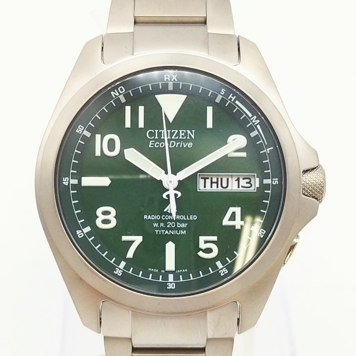 - 1867□【訳アリ】CITIZEN PROMASTER シチズン プロマスター エコ・ドライブ シルバーグリーン PMD56-2951 LANDシリーズ 電波ソーラー【0924