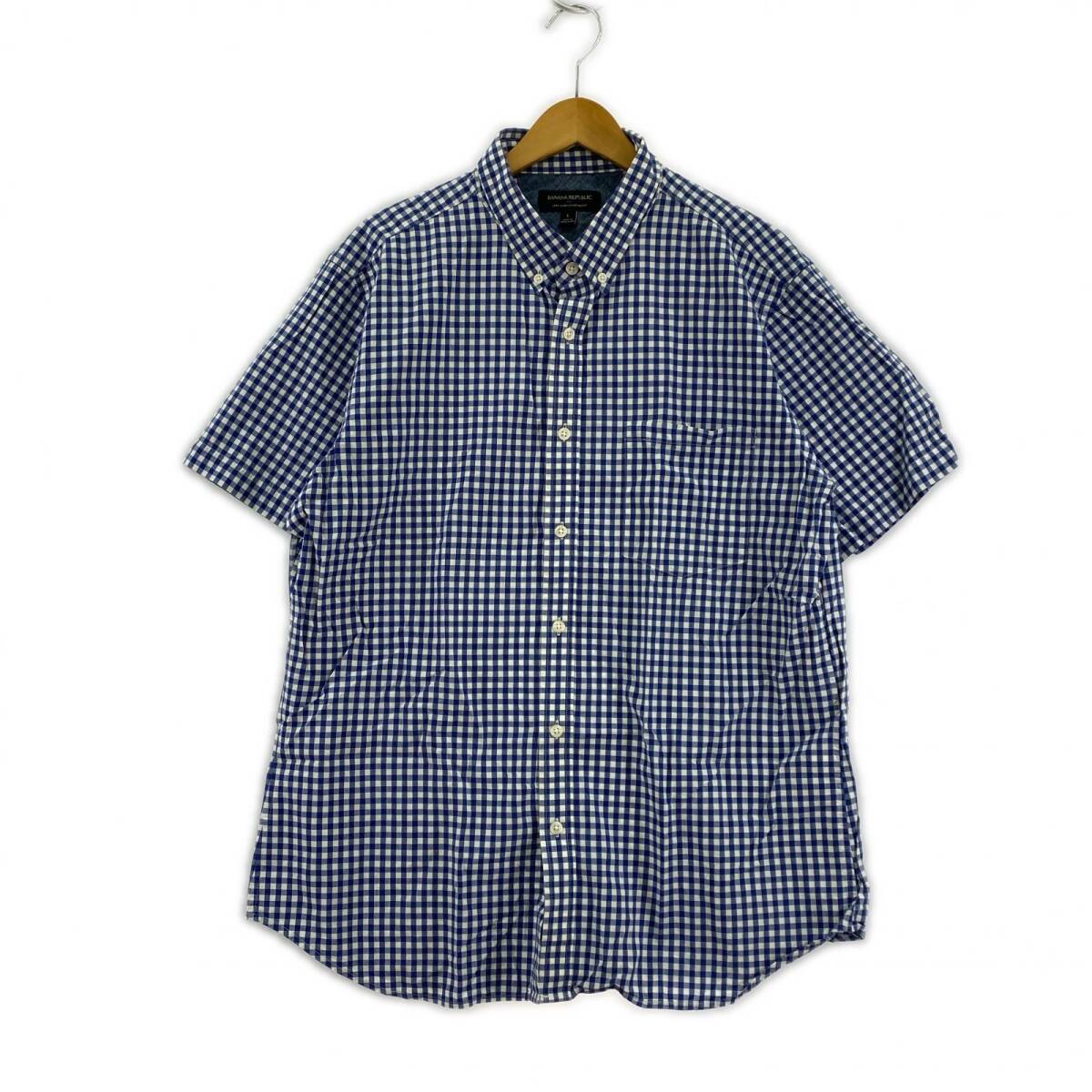 - Banana Republic バナナリパブリック ギンガムチェック ボタンダウン 半袖シャツ sizeL/ブルー×ホワイト ゆうパケットOK