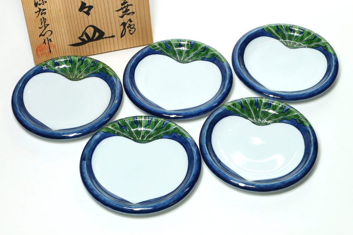 | ・有田焼 館林源右衛門 染錦蕪絵 銘々皿 五客 /染付 取皿 丸皿 |