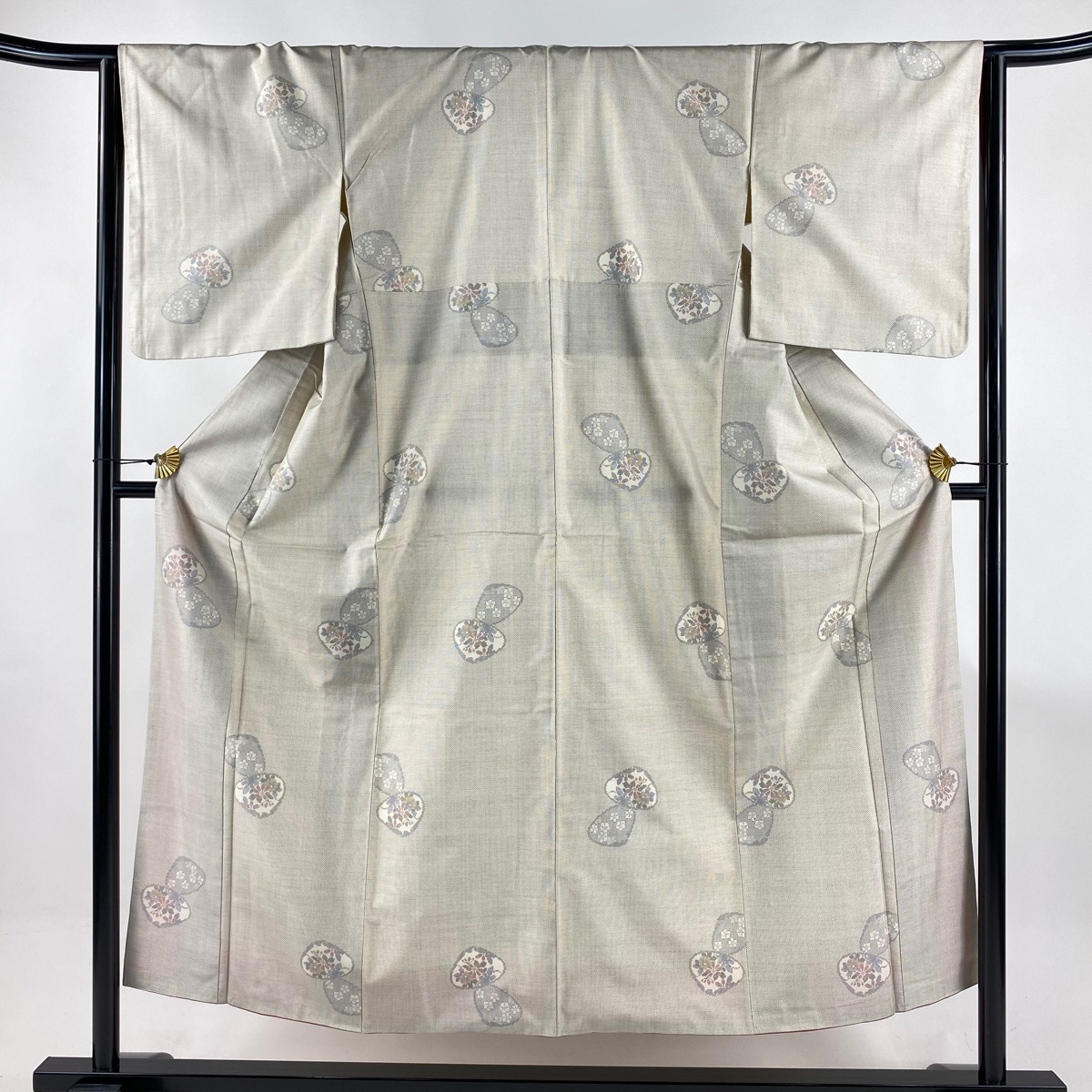 - 大島紬 身丈150.5cm 裄丈65cm M 袷 バチ衿 証紙 貝合わせ クリーム 正絹 秀品 【中古】