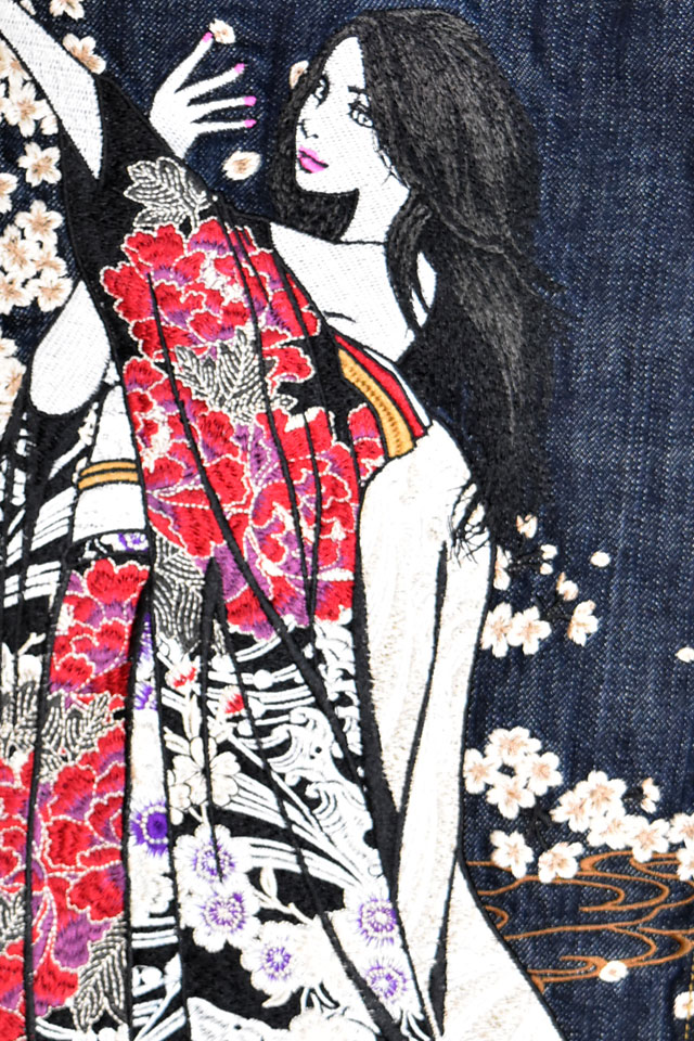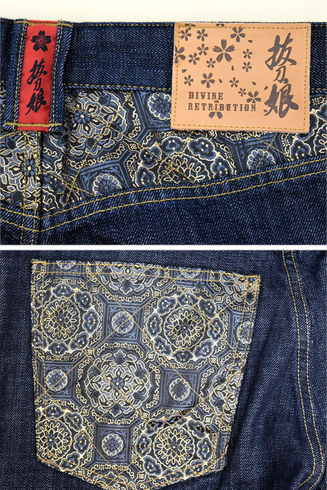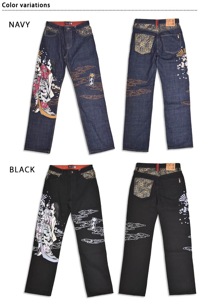 - 抜刀娘 結愛花魁デニムパンツ◆抜刀娘 ブラック 40inch 40インチ 254248 和柄 和風 刺繍 ジーンズ 着物 桜 さくら