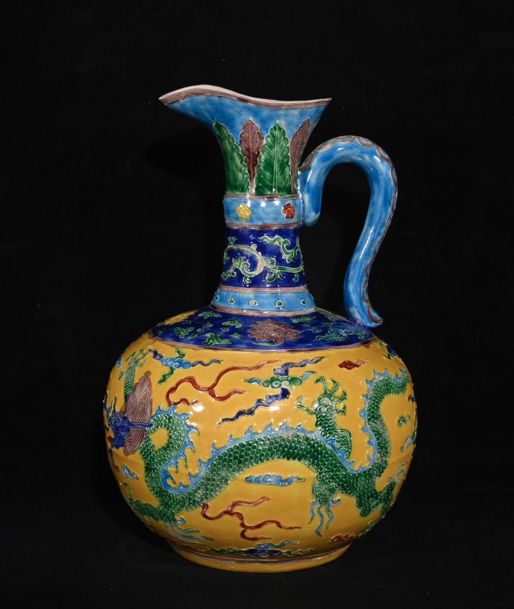 - 旧蔵 明代 永樂 龍紋 花澆 古陶瓷品 陶藝 古擺件 古置物 中国古玩 骨董品 時代物 稀少唐物