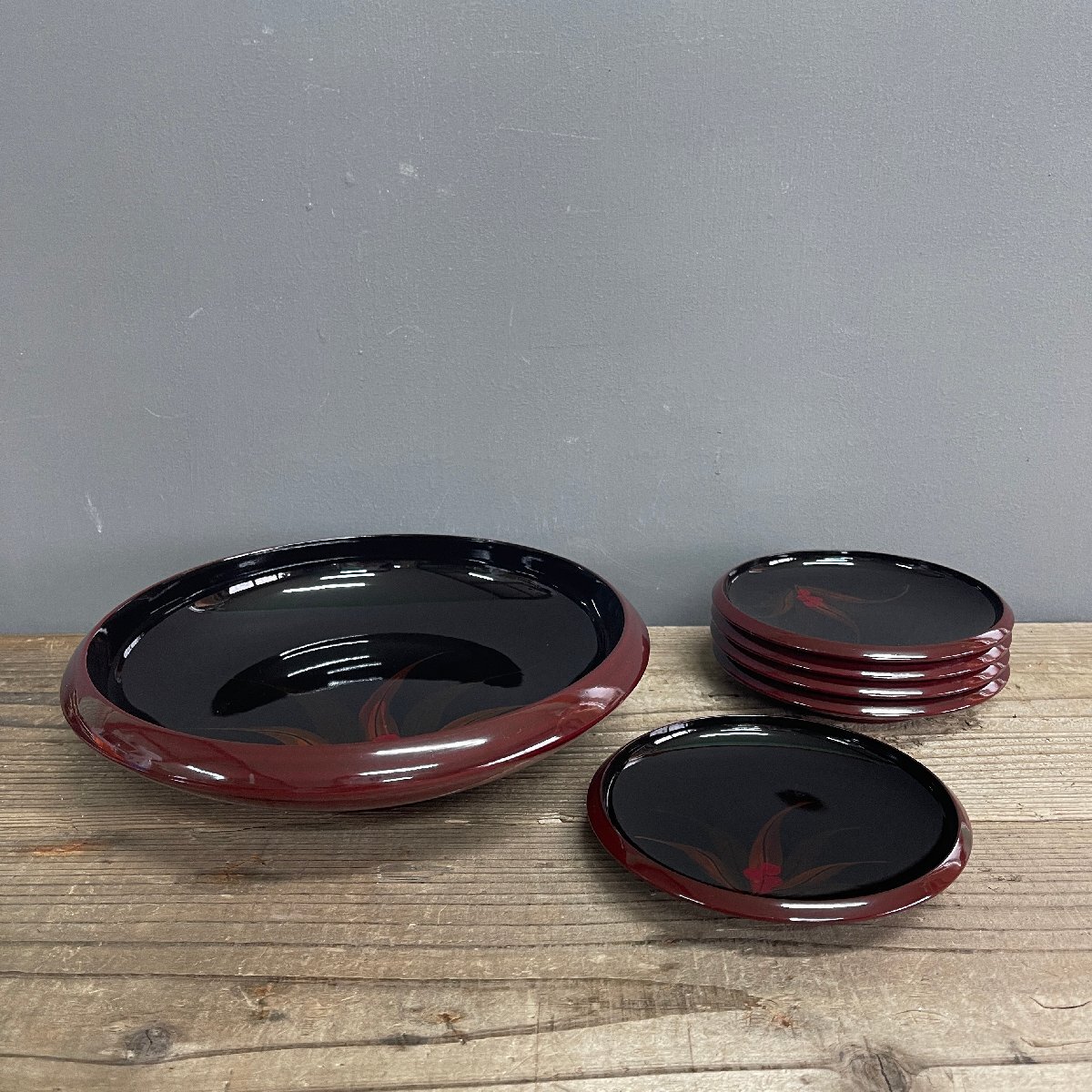 > 保管品 未使用品 お菓子皿 お菓子鉢 銘々皿 5客 和菓子 お皿 漆器 塗り物 漆塗り 赤い実 昭和レトロ