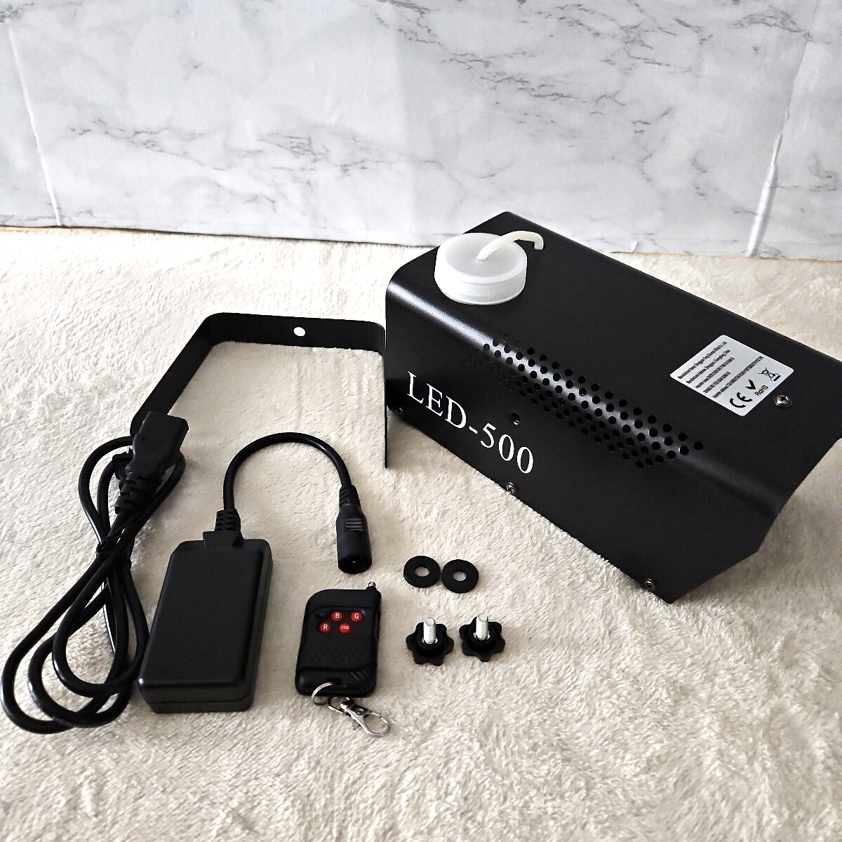 - 【未使用】フォグマシン 500w LED付き RGB リモコン付属 室内用 小型 照明 舞台 演出 パーティー イベント 結婚式 学園際 スモークマシン