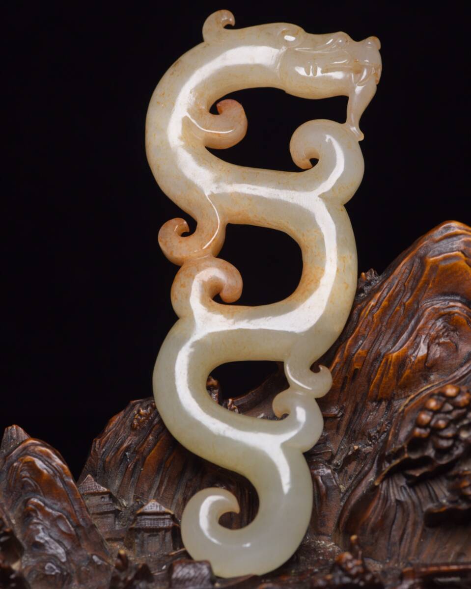 - 旧蔵 和田玉彫 龍 根付 中国古玩 骨董品 時代物 稀少唐物