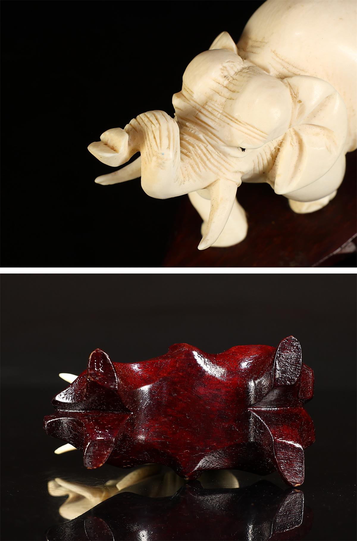 - 久1369 唐物 東洋彫刻 動物 置物 台付 高7.5㎝ 重130g