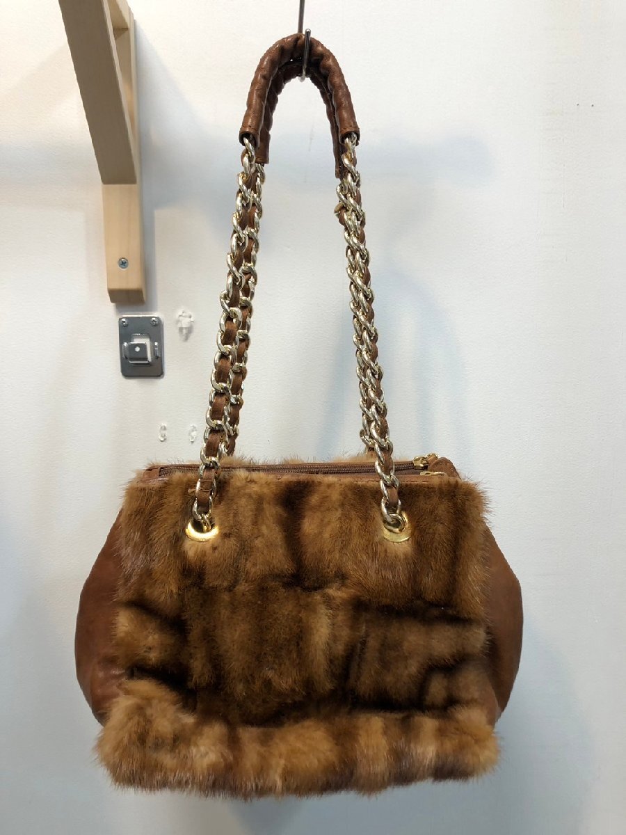 ◆PAOLO MASI パオロマージ 毛皮 ファー×レザー ワンショルダー トートバッグ 鞄 茶系 中古◆17084★拍卖