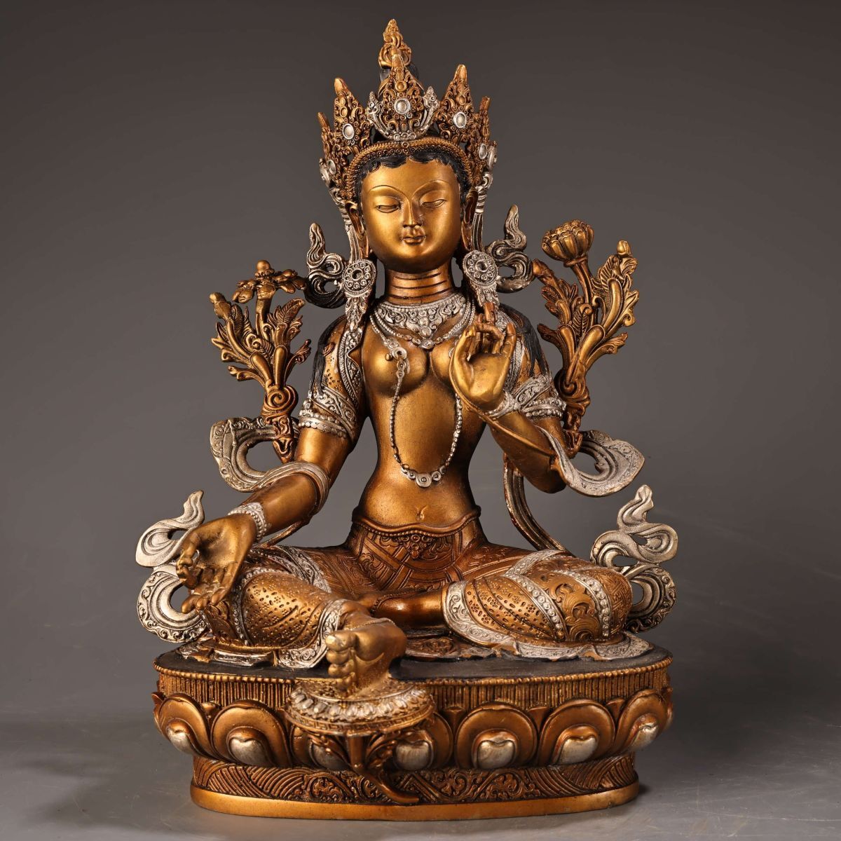 - 永し 明時代 古銅塗金描銀 緑度母 佛像 仏像 宗教 仏教古美術 極細工 古銅彫 置物擺件 古美術品 時代物 古董品 収集 旧家蔵出 中国唐物