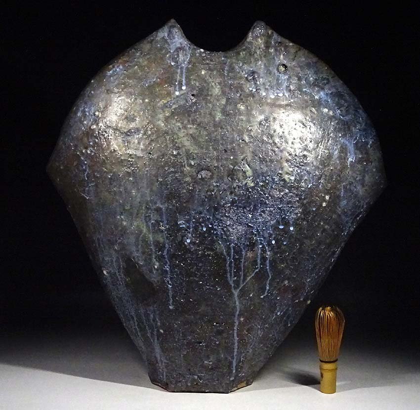 > 緑屋t■ 信楽焼 大花瓶 扁壺 在銘 高約49.5cm i9/10-6650/20-3#160