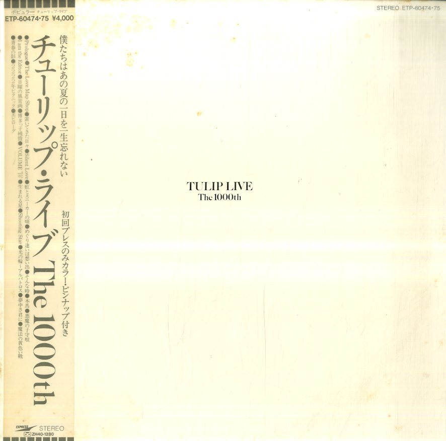 A00433300/LP2枚組/チューリップ(財津和夫)「Turip Live The 1000th (1982年・ETP-60474-75)」