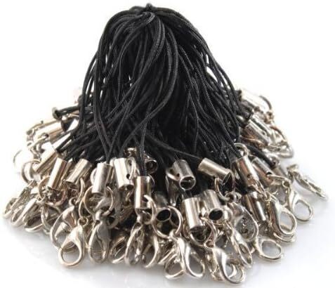 - ★★100本セット 半二重丸カン カニカン ストラップ 天然石 パワーストーン (黒紐銀P817C)