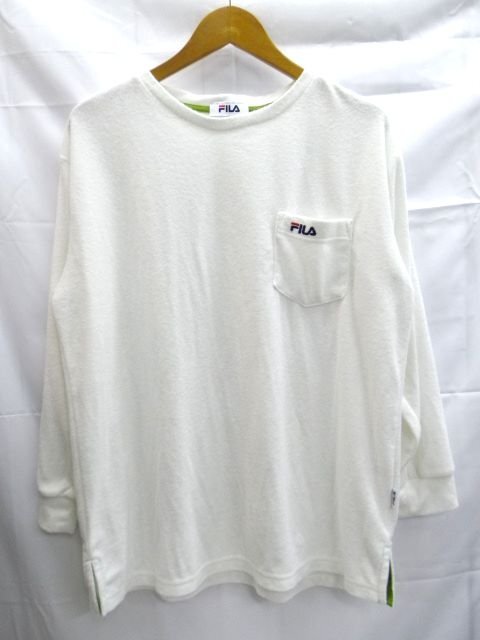 > 美品★FILA◎フィラ/パイル地/長袖カットソー/ルーズシルエット/オーバーサイズ/ビッグシルエット/ホワイト/白/Lサイズ