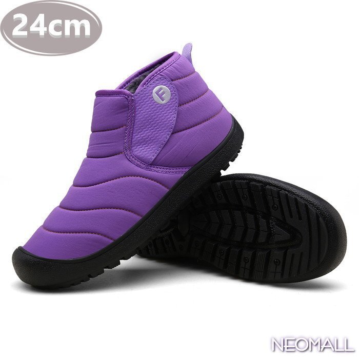 > ユニセックス スノーシューズ 【869】 24.0cm パープル ムートンブーツ スニーカー ウィンターブーツ 裏起毛 防水 防寒 防滑 冬用靴 綿靴