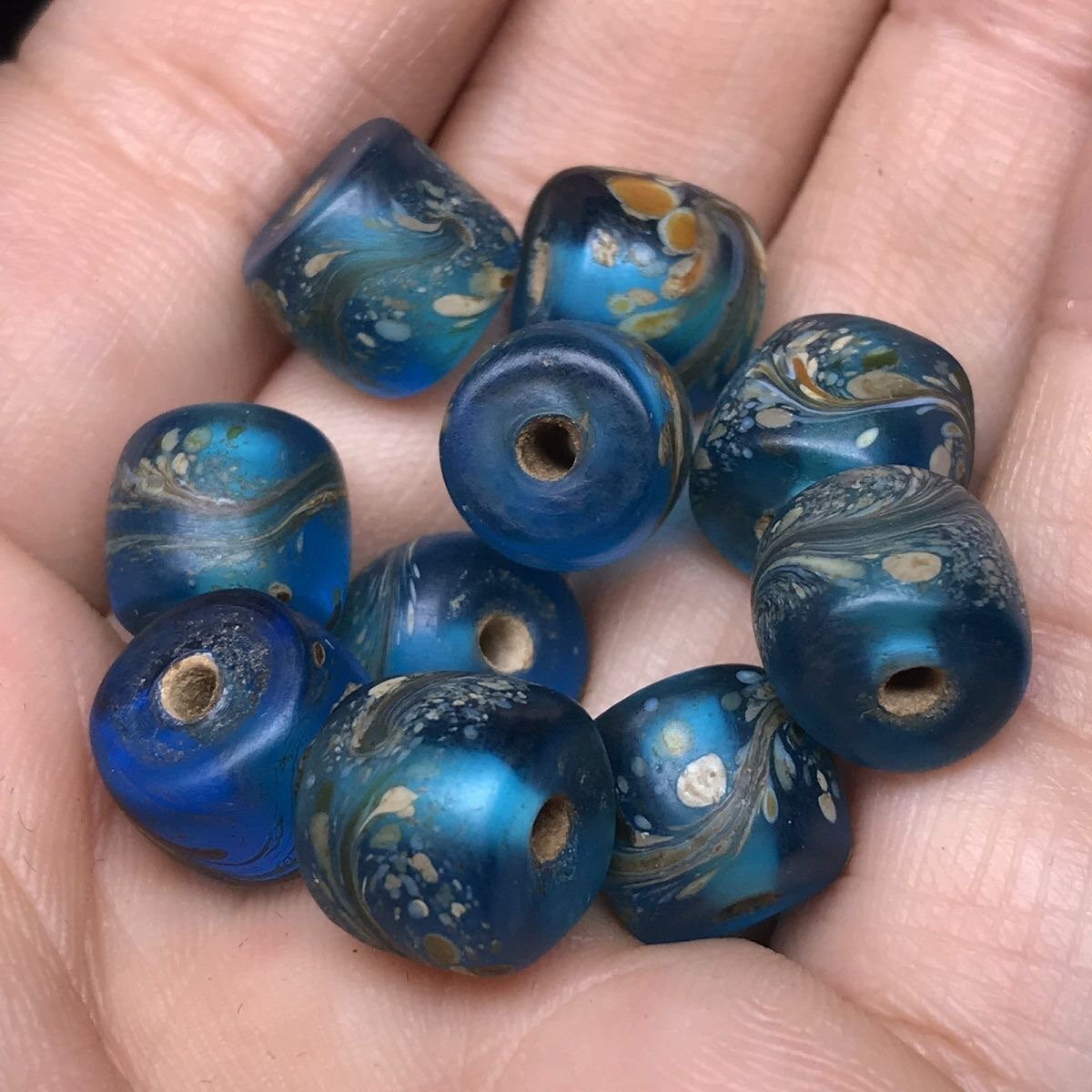- チベット 密教 風化 古珠ネパール還流 老瑠璃 瓜鳳紋 浅藍 老瑠璃 氷透珠 10個 盤珠 腰珠 散珠 diy仏珠 菩提アクセサリー 裝身具 dpp391