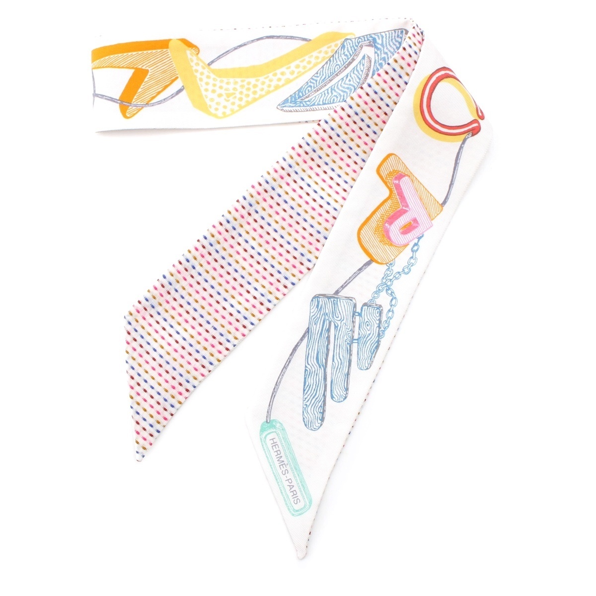 - エルメス ツイリー Chevaloscope Pointille ポワンティエ シュヴァロスコープ シルク 刺繍 スカーフ ホワイト【中古】