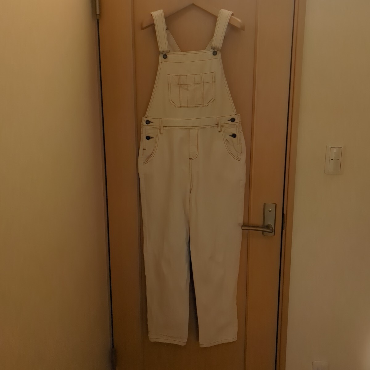 - ウエストサイズ64〜70☆デニム☆ジーパン・ジーンズ☆レディース☆ゆったり☆サロペット・オーバーオール☆生成り・アイボリー☆送料込み