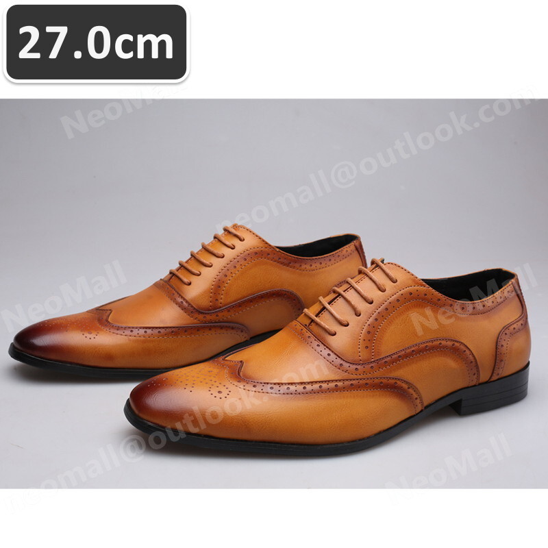 - お洒落な メンズ ビジネス レザー シューズ ライトブラウン サイズ 27.0cm 革靴 靴 カジュアル 屈曲性 通勤 軽量 インポート品【n016】