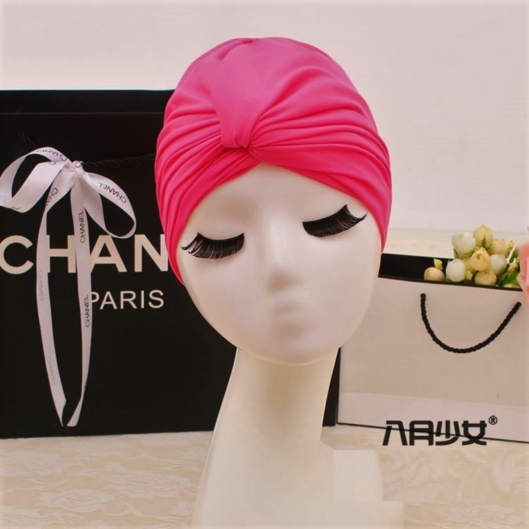 > 【 ジム や プール に♪】 お洒落な ターバン風 スイムキャップ フリーサイズ ピンク PK♪水泳帽 夏 海 水泳帽子 男女兼用