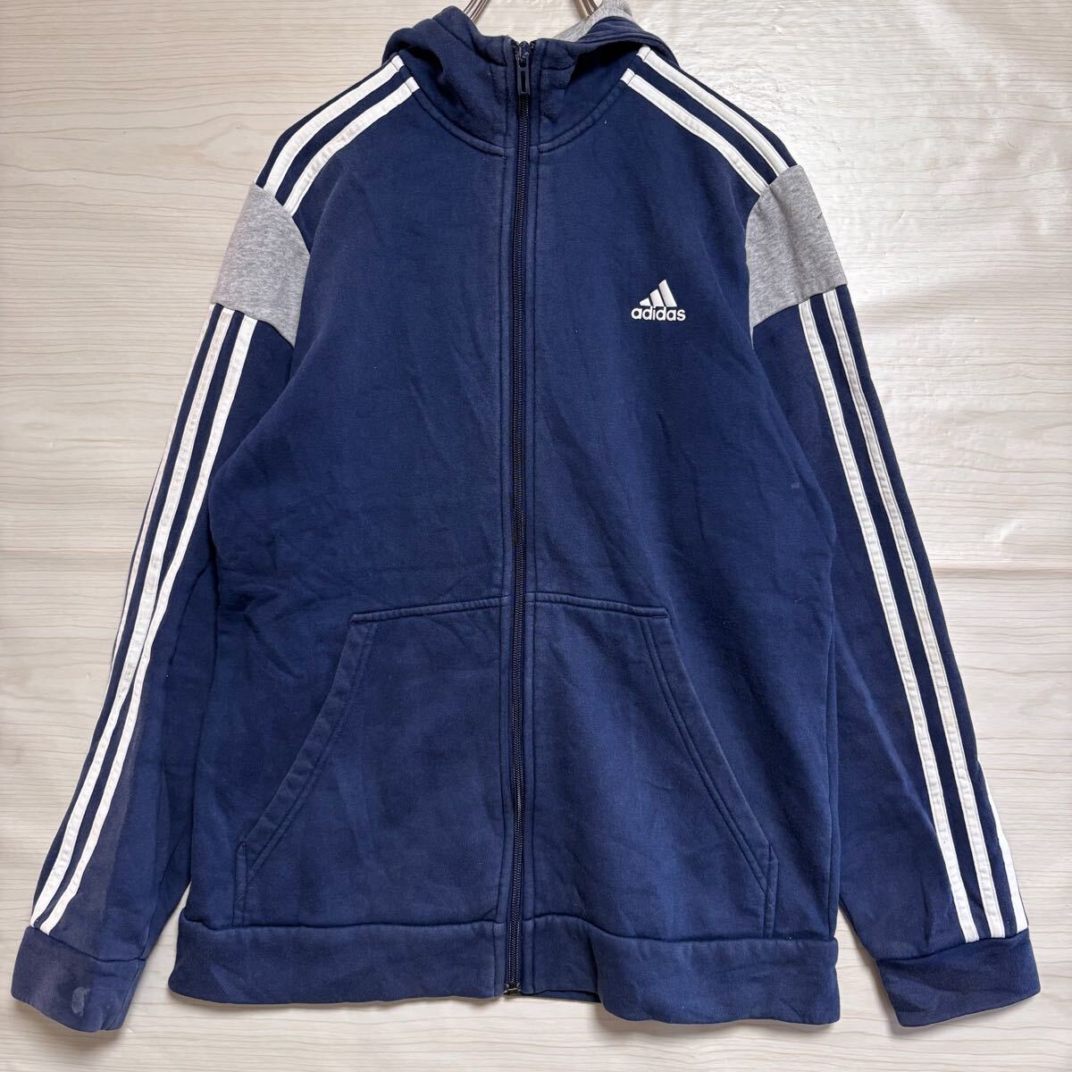 > adidas アディダス ジップパーカー ジップアップ スウェット フーディー ワンポイント サイズXL ネイビー コットン メンズ トップス(44)