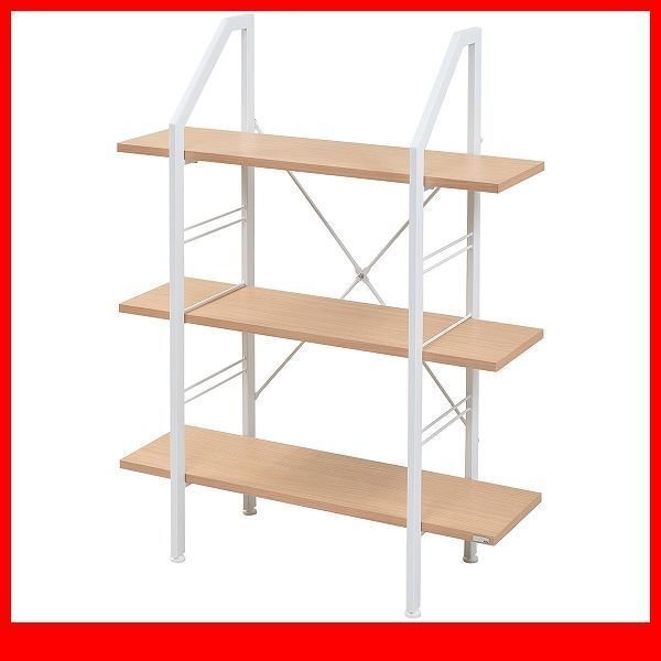 > シェルフ★ディスプレイラック オープンラック 飾り棚/3段 色々飾れる可動棚 おしゃれに収納/北欧風/木製 金属製/ホワイト×ナチュラル/a3