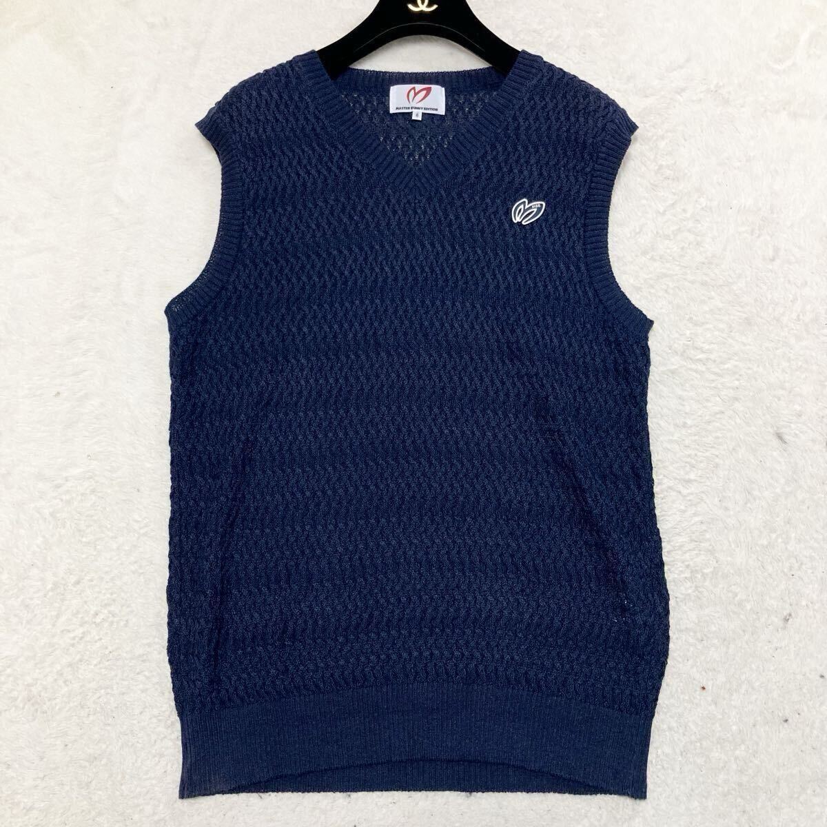 > 極美品 パーリーゲイツ PEARLY GATES MASTERBUNNY マスターバニー ニット セーター ベスト ゴルフウェア GOLF 6 XL ロゴ ワッペン ネイビー