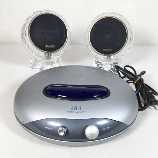 > 【3点セット/電源動作のみ確認】SASAKI ACOUSTICS ステレオアンプ ガラス製 スピーカー 球体 ペアスピーカ ササキアコースティック