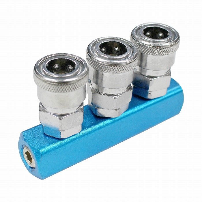 - 1/4 ワンタッチ式 3連 マルチ エアー カプラー 青/ブルー エア ホース ツール コンプレッサー 分岐 プラグ カプラー ホース