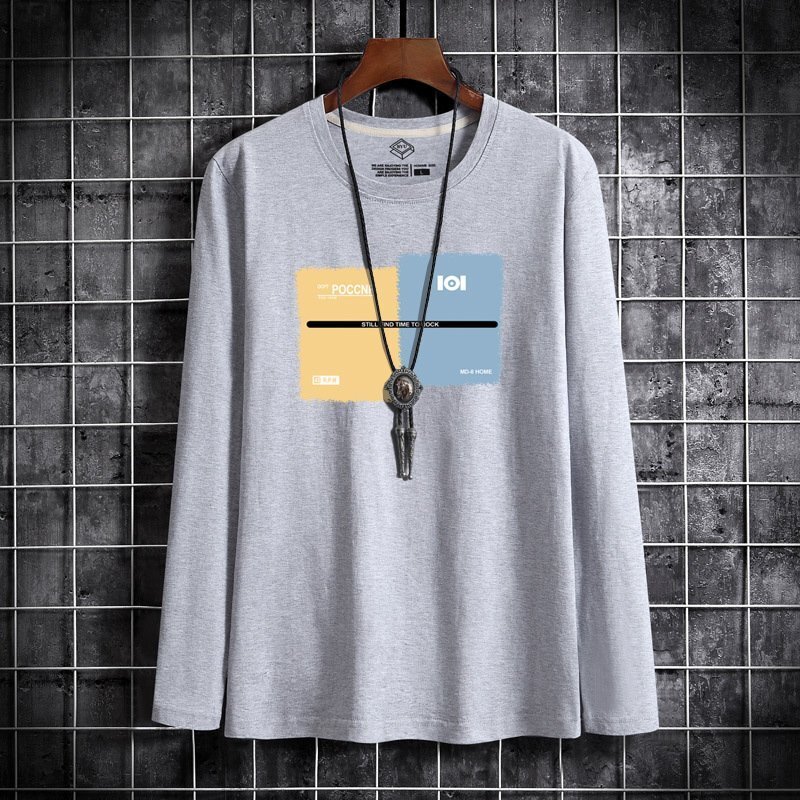 - メンズ長袖Tシャツ、カットソー 綿 春秋服 tシャツ 長袖 メンズ おしゃれ トップス 大きいサイズ 男の子 カジュアル ライトグレーXL