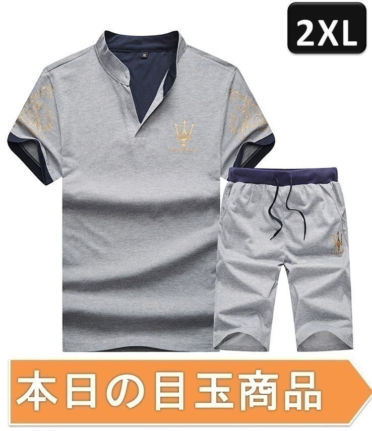> ☆今日の目玉商品☆ジャージ 上下 セット 半袖 部屋着 ルームウェア スポーツウェア セットアップ グレー 2XLサイズ 【241】