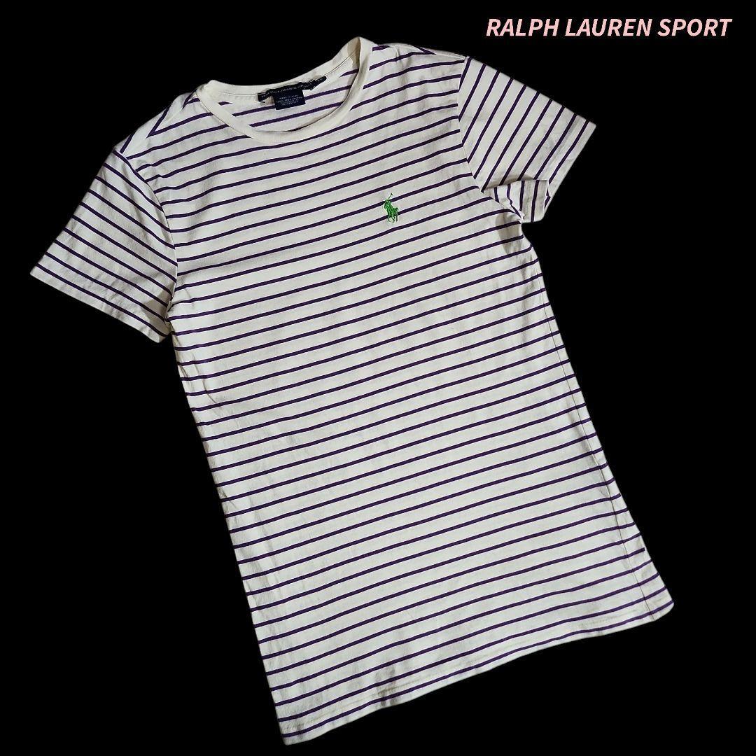- RALPH LAUREN ロゴ刺繍・ボーダー柄Tシャツ オフホワイト&紫パープル 表記サイズXS 68569
