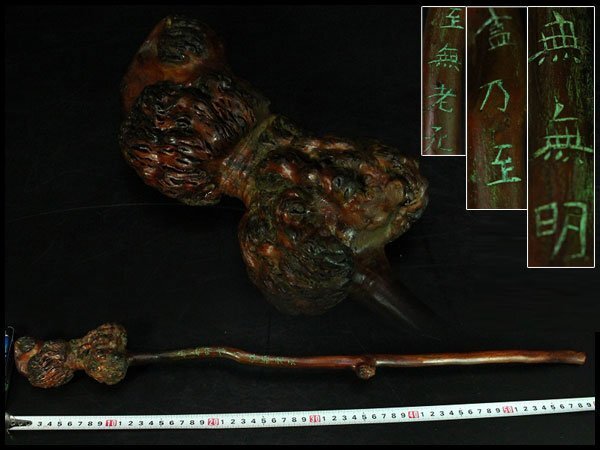 - 【金閣】中国美術 奇木 如意 刻 題詞 仏教 全長61cm 旧家蔵出 送料無料(RC954)