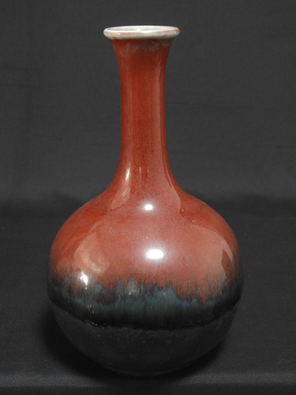 - 一輪挿 黒緑辰砂 鶴首花瓶 【送料無料】