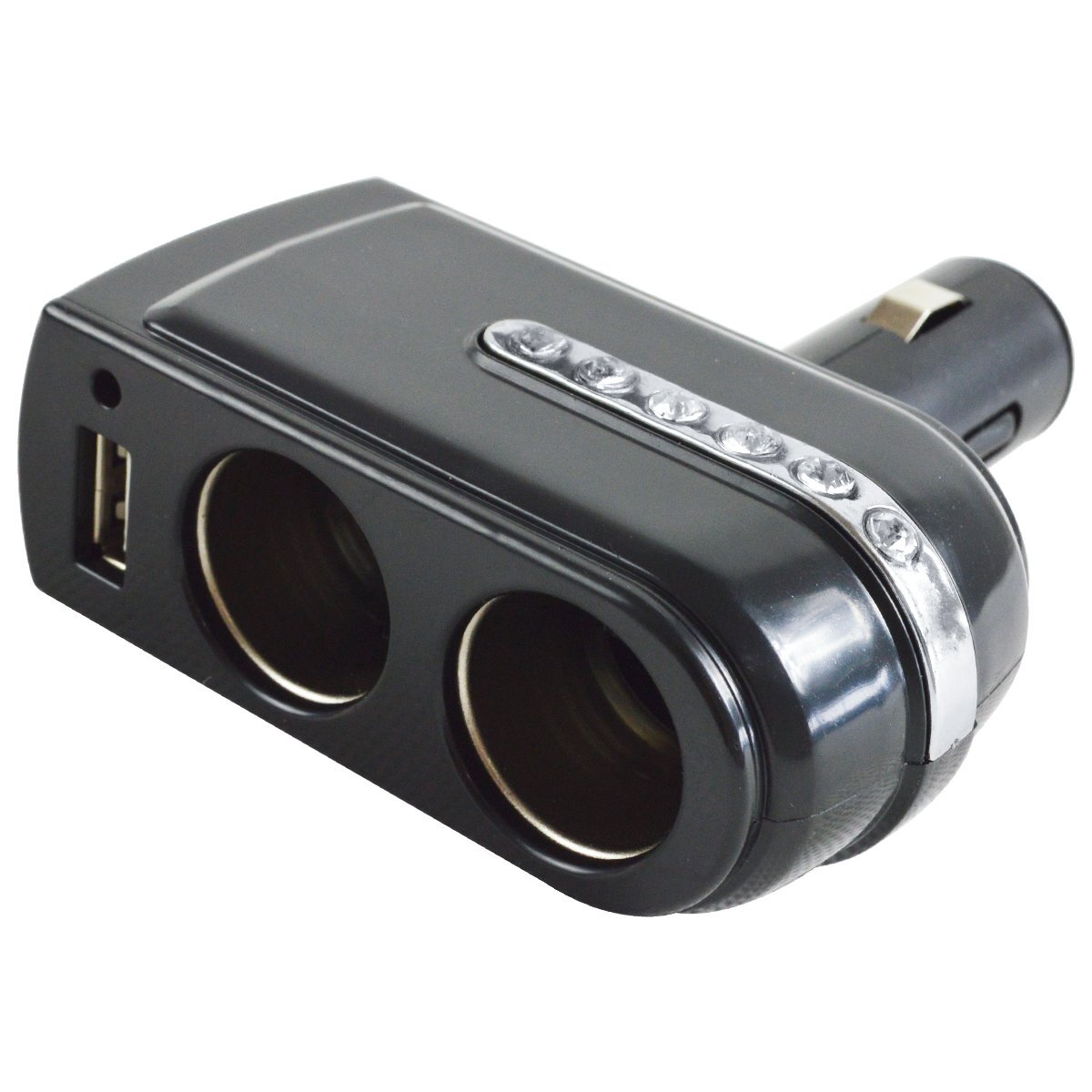 - 2連 シガーソケット 増設 + USBポート 電源増設 デコ シガソケ ストーン付き USB1ポート スマホ充電