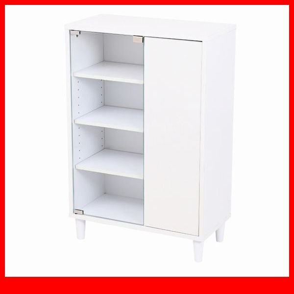- キャビネット★新品/Adatto ガラス&扉/本棚 食器棚 ディスプレイラック 多目的収納 可動棚/人気の白家具 ホワイト/a3