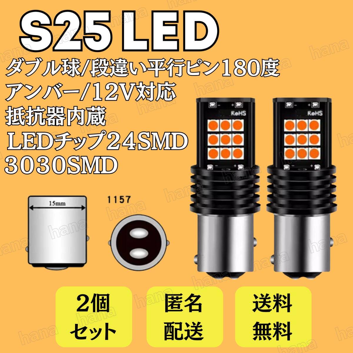 - S25 LED ウィンカー ウインカー バルブ 平行ピン 180度 アンバー 2個セット ダブル キャンセラー ハイフラ防止抵抗 内蔵 オレンジ 黄色