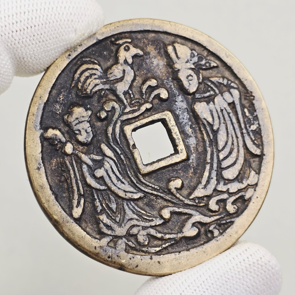 - 超レア 古銭 銅銭 硬貨 絵銭 清代 十二支 双仙酉鶏紋 厭勝銭 金運上昇