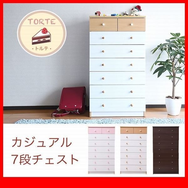 - 箪笥 チェスト★キュートなカジュアルチェスト 7段 幅60cm/8杯/ハイ スリム/洋服タンス 整理ダンス/白 桃 ナチュラル 濃茶/fra-012/zz