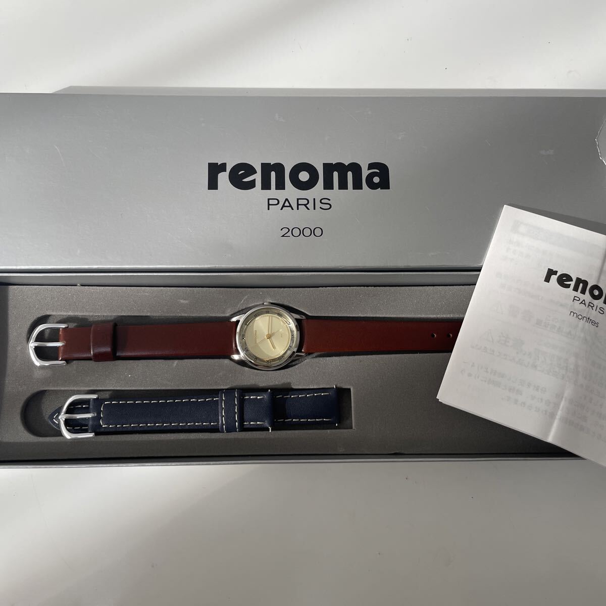 - レノマ renoma 腕時計 クォーツ 変えベルト付き 電池切れ 動作未確認 2000年記念ウォッチ