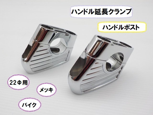 - JK★☆(23)汎用 22Φ用メッキハンドル延長クランプ(ハンドルポスト)バイク(CB250T・ハーレー・バンバン・モンキー・フュージョン)