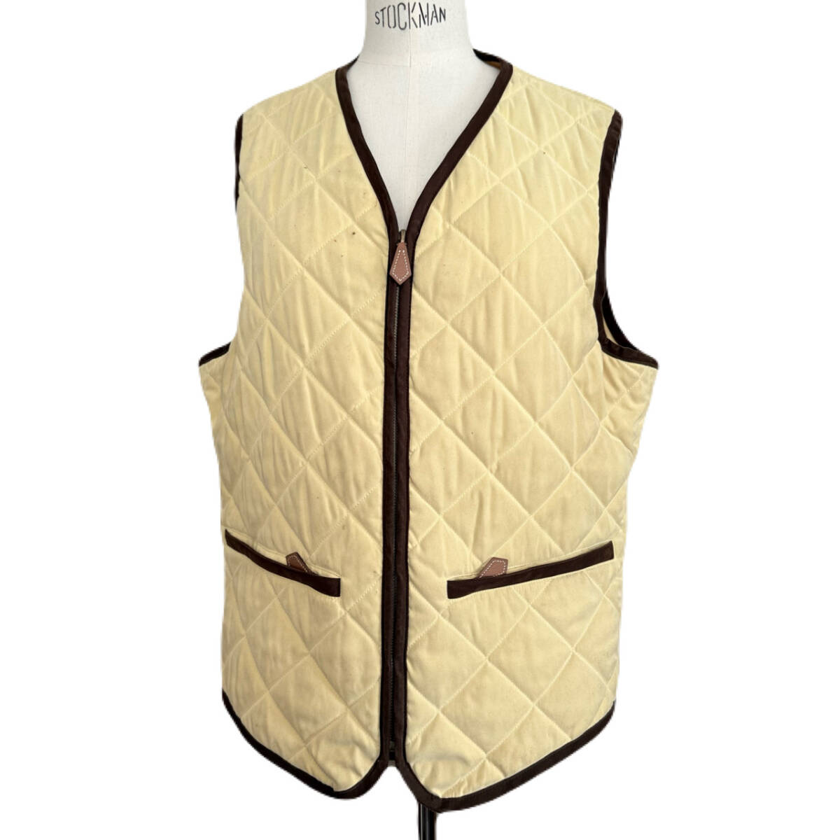 - ★ 希少 HERMES エルメス ヴィンテージ メンズ キルティング ベスト ベージュ×ブラウン サイズ 48 メンズ フランス製 レア ★