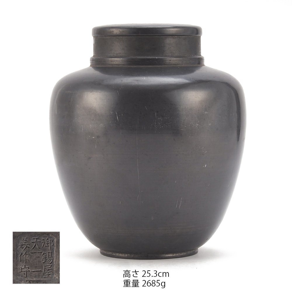 【夢工房】御錫屋天下一美作守 古錫 大茶壷 箱入 高さ25.3㎝ TE-094