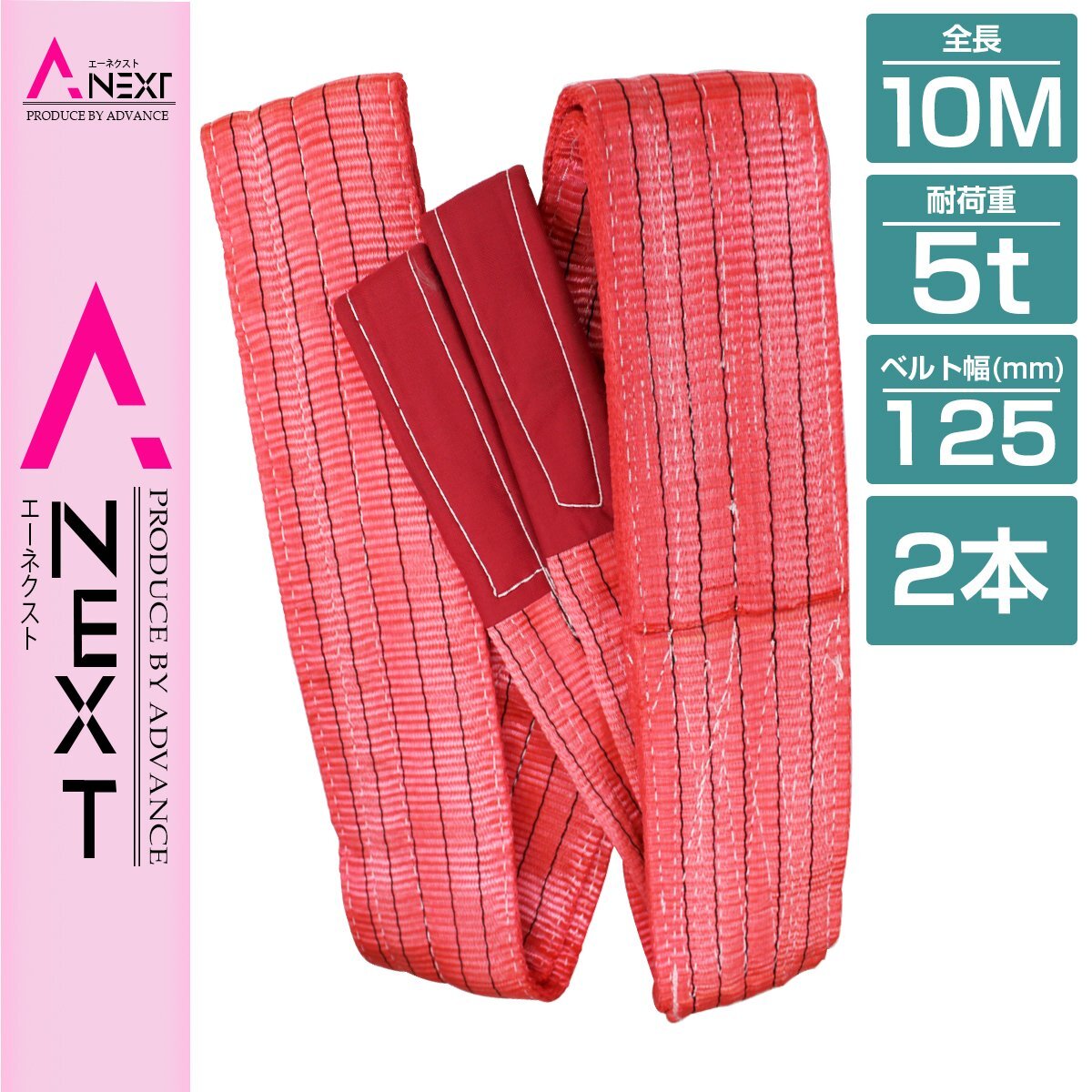 > [2本 セット/耐荷5t/長さ 10m] スリング ベルト 吊上げ ナイロン クレーン ロープ 荷吊り 玉掛け 牽引 運搬 5000kg 5トン 幅125mm
