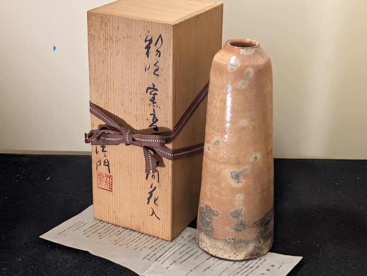 - 高橋佐門 作 粉吹窯変 筒花入 共箱 〔まとめて取引がお得⇒追加送料無し〕/花生/花瓶/花器/壺/陶磁器/