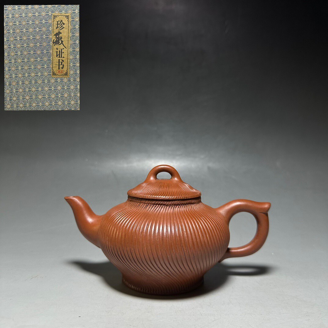 - 永し 旧家蔵出 顧景舟款 品名【笑櫻】朱泥 段泥 煎茶道具 急須 単孔口 唐物 紫砂壺 紫砂壷 茶壷 茶壷 極細工 古美術品 中国唐物 A1215