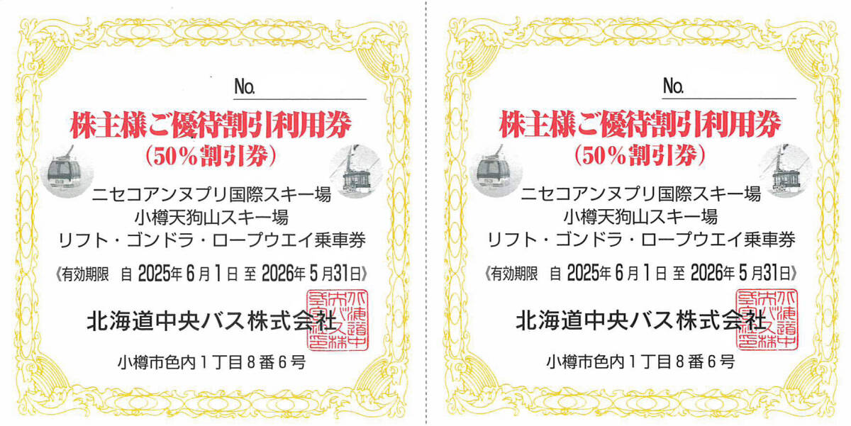 - ニセコアンヌプリ国際スキー場、小樽天狗山スキー場リフト券 50%割引券2枚セット