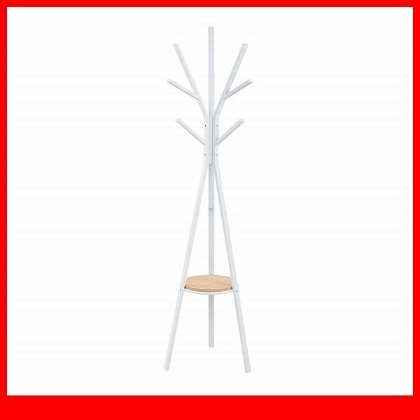 > ハンガー★ポールハンガー パイプハンガー ハンガーラック/小物収納に便利 棚付き/北欧風/木製 金属製/ホワイト×ナチュラル/限定 激安/a3