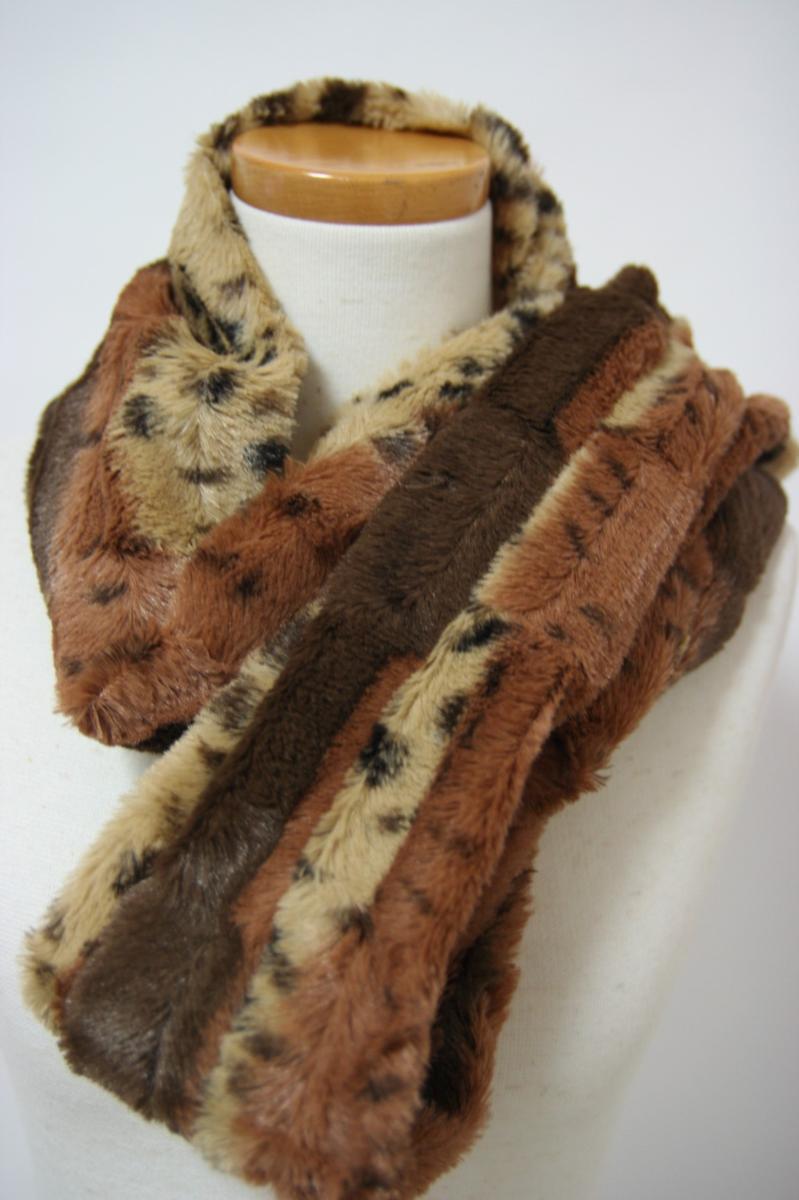 > 送料無料◆ヒョウ柄◆ミンクタッチ◆フェイクファースヌード(ベージュ×ブラウン)0914◆レオパード柄◆豹柄◆小顔効果◆