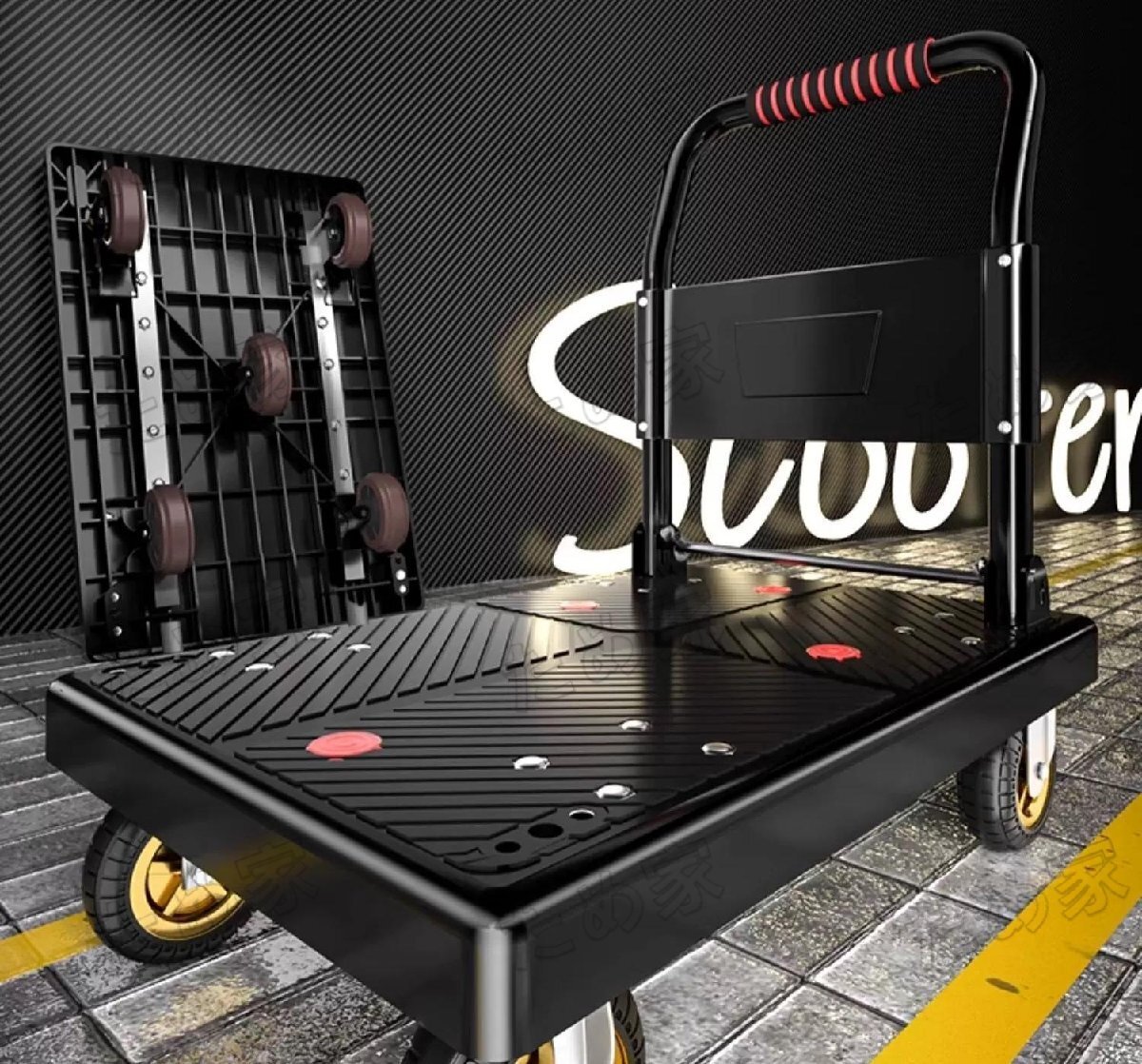 - キャリーカート 台車 折りたたみ 軽量 運搬台車 72×47cm 大天板 荷台車 大型 荷物台車 耐荷重 300kg 手押し車