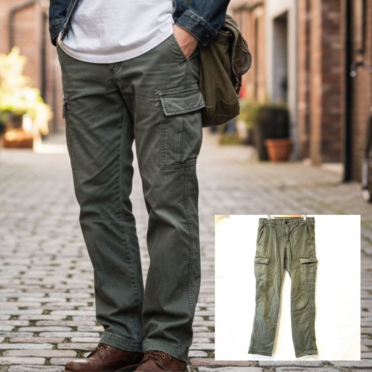 > 程よいUSED加工◎【UNIQLO】ユニクロ カーゴ パンツ ミリタリー アメカジ ストレッチ アウトドア カーキ メンズ ウエスト82/Y38141UU